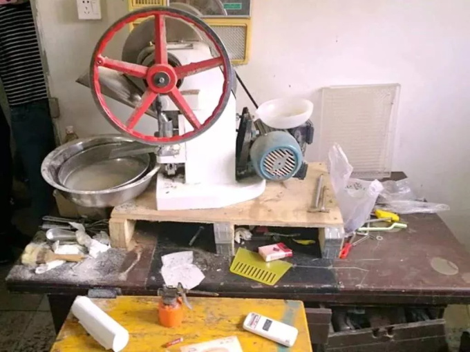 據(jù)陳某交代,這間小屋是租來(lái)的,里面陰暗潮濕,陳設(shè)雜亂。在屋里,民警搜出了大量的粉紅色稀泥狀原材料以及大批未包裝的心形“糖果”成品。屋子的中間擺著一臺(tái)壓片機(jī),這就是陳某生產(chǎn)糖果的加工設(shè)備。平時(shí),陳某將買(mǎi)來(lái)的原料和成稀泥狀后,加入“西布曲明”攪拌好,然后注入壓片機(jī),“糖果”便陸續(xù)吐出來(lái)。