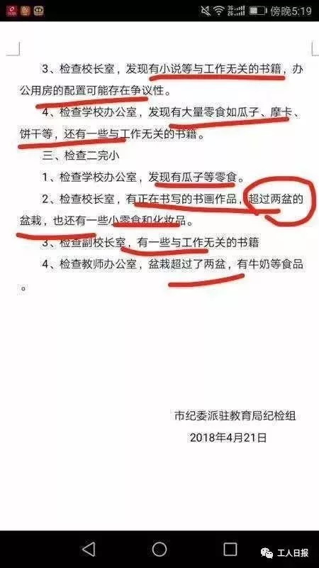 “檢查校長室,有正在書寫的書畫作品,超過兩盆的盆栽……”這是湖南常德津市市紀(jì)委常委王華在今年4月21日帶隊(duì)突擊檢查教育系統(tǒng)辦公用房后書寫的一份問題通報(bào),經(jīng)津市市教育局紀(jì)檢組微信群流出后,被廣泛傳播,并遭到網(wǎng)友質(zhì)疑“標(biāo)準(zhǔn)加碼”。