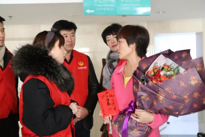 上午9點(diǎn)半,8名愛心成員手捧鮮花來到了兒童內(nèi)科病房探望于枬艷,并將一萬元的愛心善款送到了其母親邵士珂的手中。出于衛(wèi)生方面的考慮,愛心成員們并沒有進(jìn)入病房,只是透過玻璃遠(yuǎn)遠(yuǎn)地為于枬艷送去他們的祝福。