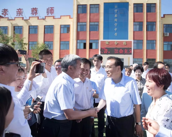 圖為李克強總理今年6月考察寧夏銀川市永寧縣閩寧中學時,接連詢問幾位教師的工資收入。