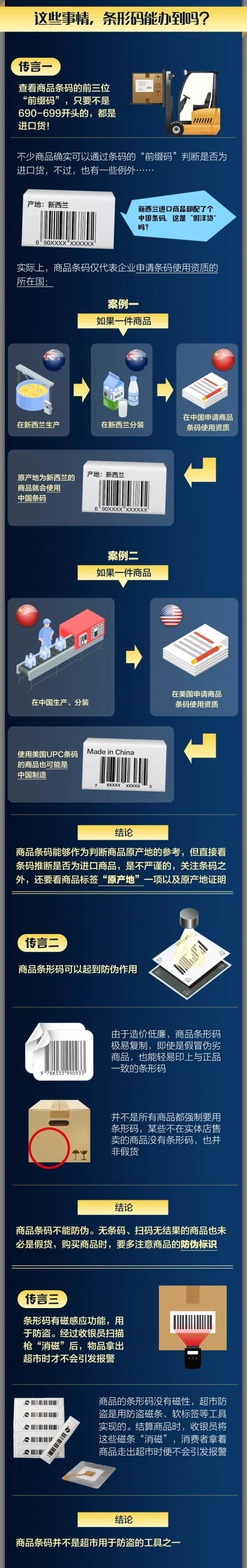 如果你經(jīng)常購買進(jìn)口商品,可能還聽過這些傳言:如果商品條形碼的開頭數(shù)字是“69”,那么該商品就一定國產(chǎn);若是原產(chǎn)地位于國外的商品,條碼以“69”開頭,那就證明買到了假“洋貨”;用軟件掃描條碼,若沒有結(jié)果,也可能是碰到了假貨……這些說法,都是真的嗎?