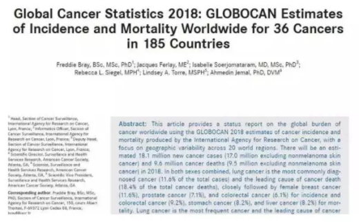 日前,美國癌癥學會官方期刊發(fā)表了《2018年全球癌癥統(tǒng)計數(shù)據(jù)》報告,這篇文章評估了185個******中的36種癌癥發(fā)病率和死亡率。
