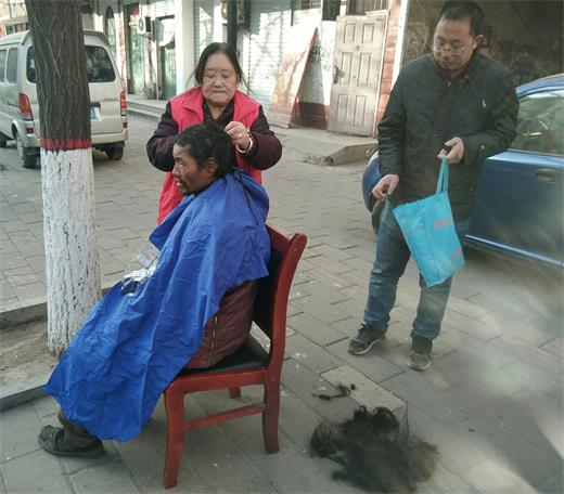 稷山縣學(xué)雷鋒志愿者協(xié)會潘春虎、陳菊鵝、王東虎把該男子帶回協(xié)會駐地,由陳菊鵝親自為該男子理發(fā)、洗頭;該男子激動的說道,這是他在十余年來******次理發(fā)。