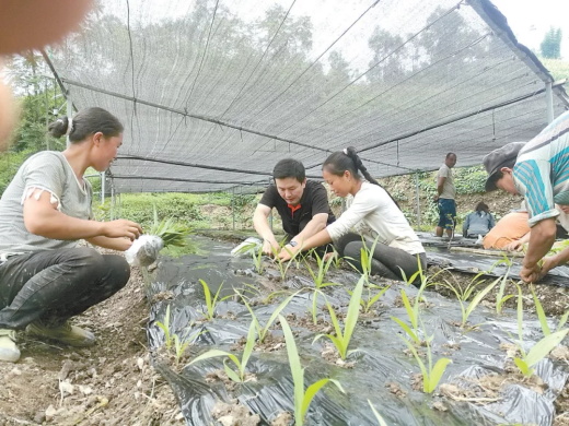王壽梗(左二)與村民們一起套種白芨。(資料圖片)