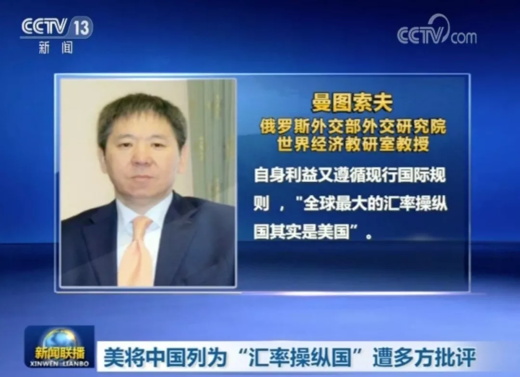 美方把中國(guó)列為“匯率操縱國(guó)”是政治因素作祟。
