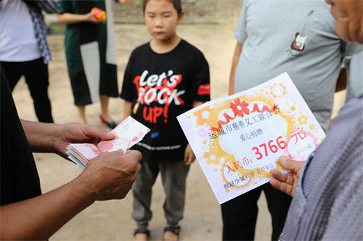 我們義工聯(lián)合會(huì),經(jīng)會(huì)長親自來實(shí)地考察確認(rèn),短短三天時(shí)間,大家熱情響應(yīng),籌措善款3776元,有孩子拿出自己的零花錢,有外地出差發(fā)紅包獻(xiàn)愛心……眾人拾柴火焰高,愛心點(diǎn)點(diǎn)相聚。一大早,我們相聚在翟曹村,空中迎風(fēng)招展的會(huì)旗,展示著我們的大愛奉獻(xiàn);每個(gè)人臉上洋溢的笑容,愛心付出的同時(shí),卻收獲了滿滿的陽光。