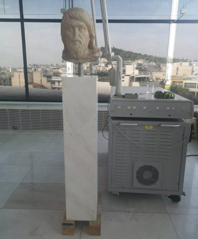 希臘方面向習(xí)主席介紹了激光文物修護(hù)技術(shù),