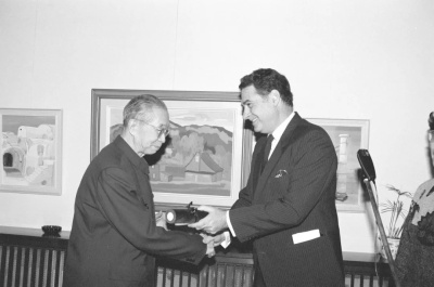 羅念生接受希臘雅典科學(xué)院文學(xué)藝術(shù)獎(jiǎng)。