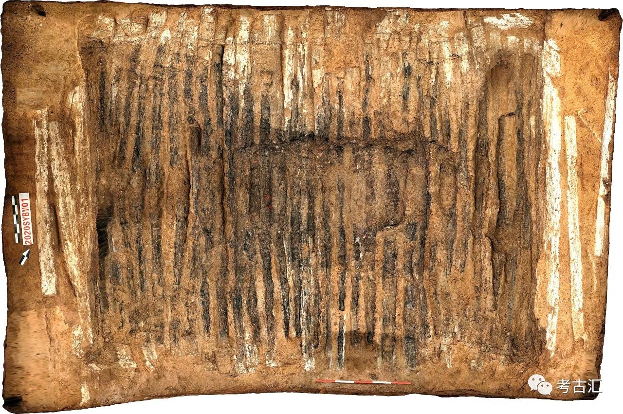 清理出的M1槨蓋板灰痕(共32塊東西向橫鋪)