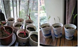 接下來就是“種”。沒有試驗(yàn)田咋種?我忽然想起用飲水紙杯來“種”。也許有人會笑話我,沒見過在“紙杯里還能種高粱”!其實(shí),這正是我向?qū)I(yè)農(nóng)科工作者學(xué)習(xí)的。