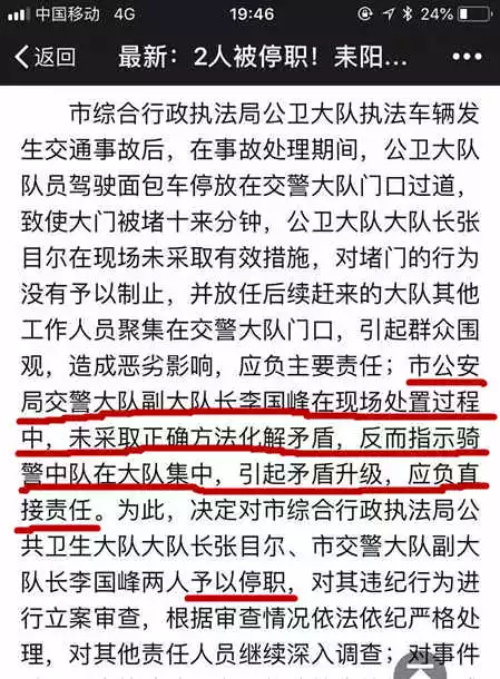 ***終處理結(jié)果:城管的一個(gè)副大隊(duì)長(zhǎng)和交警隊(duì)的一個(gè)副大隊(duì)長(zhǎng),雙雙被停職。