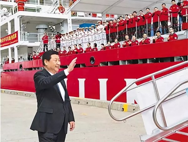 2014年11月18日,正在澳大利亞訪問的習(xí)近平到霍巴特港看望正在這里補(bǔ)給的“雪龍”號全體科考人員。