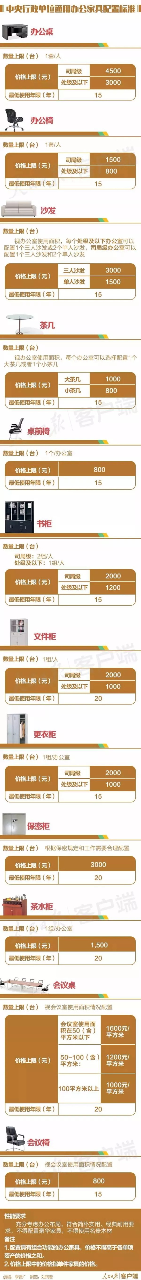 以后中央行政單位的辦公配置標(biāo)準(zhǔn)是這樣的: