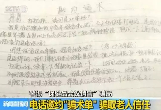 按照邀約話術單上的說辭,僅一周的時間,就有400多名老人信以為真,答應前來參加活動。