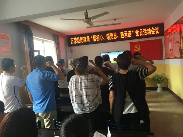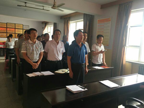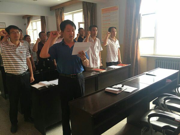 局機(jī)關(guān)全體黨員在支部書記閆國偉的帶領(lǐng)下,面對(duì)鮮紅黨旗重溫入黨時(shí)的錚錚誓言。