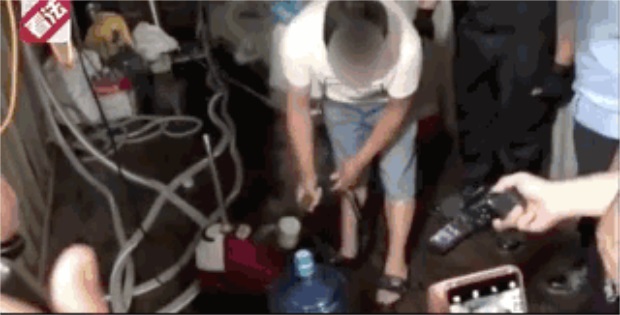 假冒的品牌桶裝水 成本只要幾毛錢