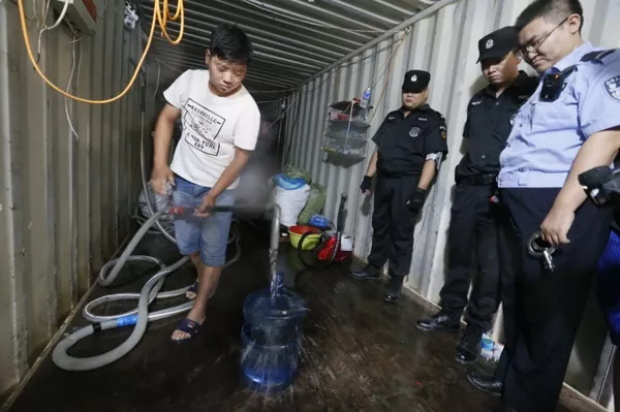 警方在院內發(fā)現(xiàn)兩個集裝箱,在集裝箱的***深處存放著一個大水箱,水箱前擺放著水管、桶蓋、各品牌標識等物品。任某說,水箱里存放的是地下水,他先將水進行過濾后,在集裝箱內進行封裝。