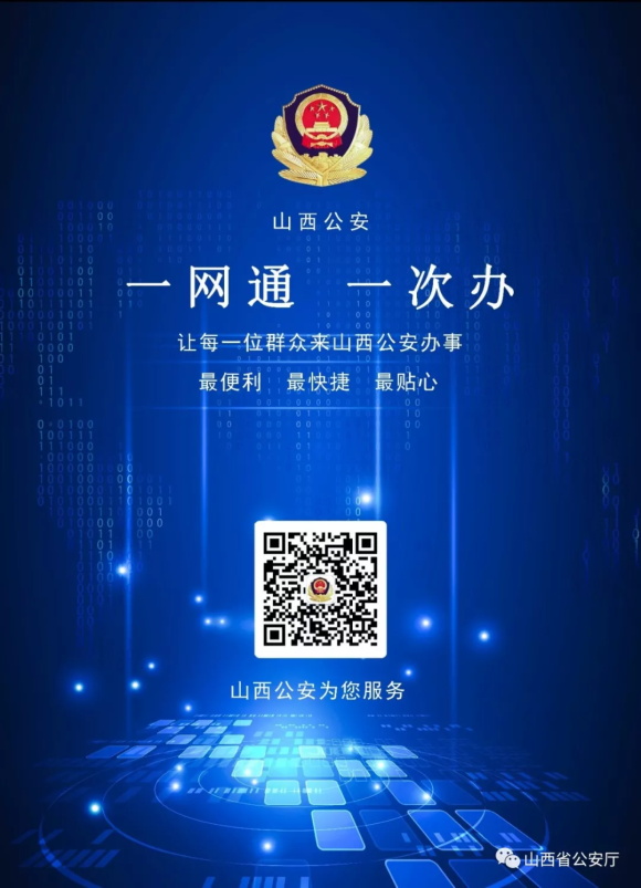 長(zhǎng)按二維碼關(guān)注山西公安“一網(wǎng)通一次辦”平臺(tái)