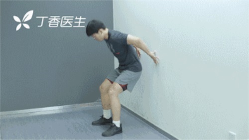背部靠在墻面,身體慢慢向下坐;