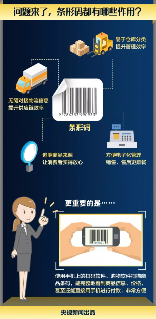 如果你平時(shí)經(jīng)常出沒在各大商場、超市,肯定注意到過這個(gè)細(xì)節(jié):收銀員在結(jié)算商品時(shí),會用掃描槍讀取商品的條形碼。經(jīng)過掃描,各種商品的名稱、價(jià)格就準(zhǔn)確地顯示在電腦上??梢哉f,商品條形碼便是商品的“身份證”。