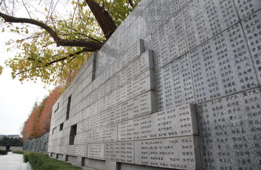 △侵華日軍南京大屠殺遇難同胞紀念館“哭墻”上,刻滿了遇難同胞的名字。