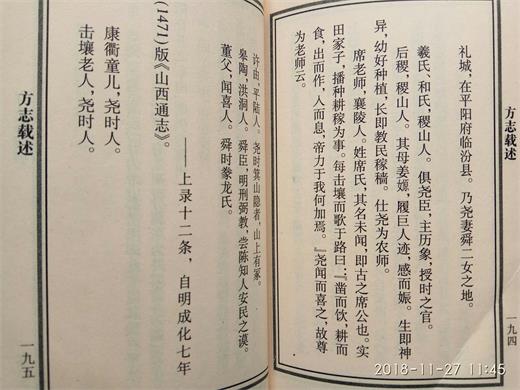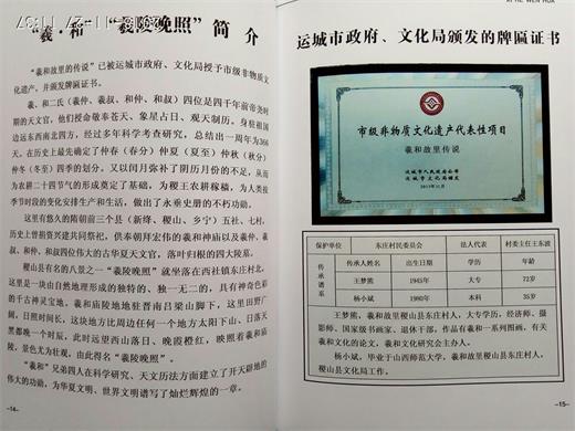 自明成化七年(1471)版《山西通志》記載:羲氏、和氏,俱堯臣,主歷象,授時之官。