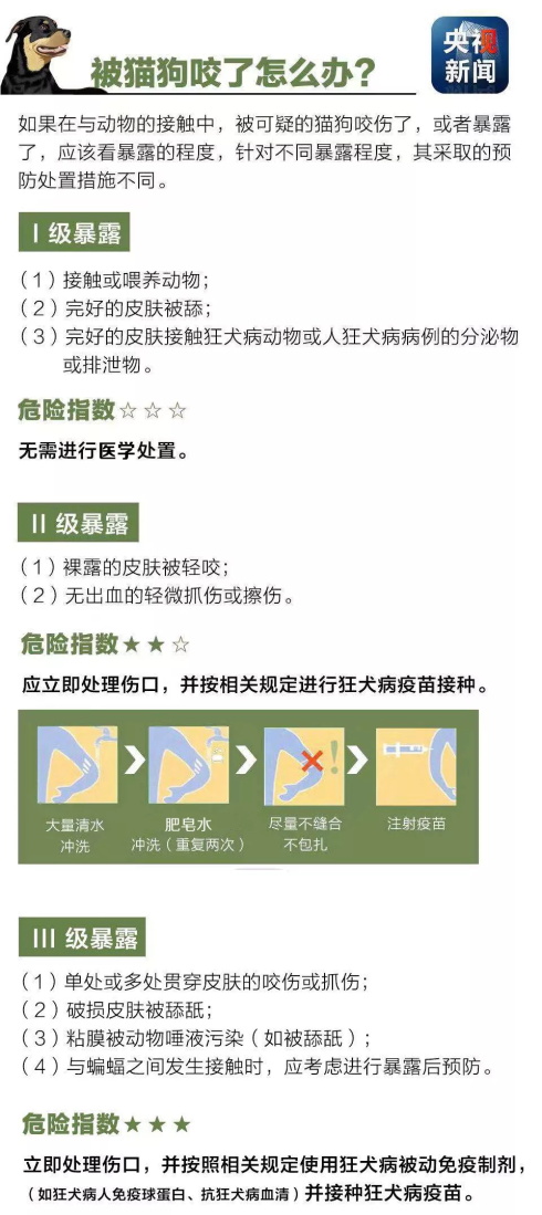 世衛(wèi)組織表示,被動(dòng)物咬傷后,在及時(shí)采取預(yù)防措施的同時(shí),應(yīng)告知獸醫(yī)部門(mén)查明咬人的動(dòng)物,并將此動(dòng)物進(jìn)行隔離觀察。