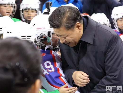 習(xí)近平在北京五棵松體育中心觀看青少年冰球訓(xùn)練,
