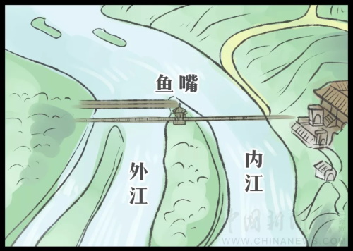 李冰讓內(nèi)江的河床低于外江,枯水時節(jié),可以保證6成水進(jìn)入內(nèi)江,4成水排往外江。而在夏季洪水來臨時,因為彎道動力學(xué)的原理,六成水會排往外江,四成水進(jìn)入內(nèi)江。