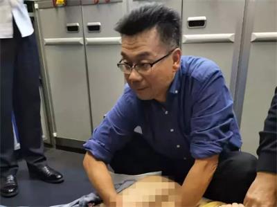 兩位醫(yī)生在飛機(jī)上用嘴吸尿