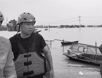 安徽省合肥市廬江縣消防救援大隊(duì)政治教導(dǎo)員陳陸在搜救被困群眾時(shí),
