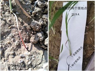 另外,我在2019年8月9日,把6月11日、22日和7月1日淺播的幾個(gè)紙杯中的4個(gè)移栽到公園里,26天后觀察,全部長成了“微粱”,其中有一棵還長出個(gè)小穗子,只結(jié)了7-8粒種子。后來被園藝工人割草割掉了。家里剩下的幾個(gè)杯子,再用半截紙杯加高,把土埋住莖基部,繼續(xù)觀察。結(jié)果始終都是“幼苗”,就像麥苗一樣,不僅沒有開花結(jié)果,連拔節(jié)也沒有。直到10月1日,全部扔掉了。它們就是靠初生根一直活了3-4個(gè)月!