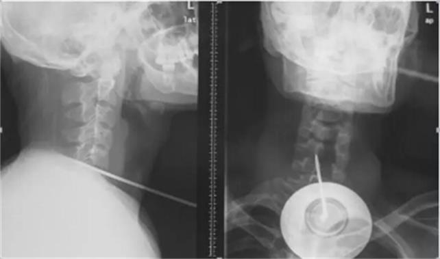 2月13日凌晨3時,上海長征醫(yī)院上演了一場真實(shí)版的“生死時速”。一根長約17厘米的鋼針從患者頸部正中穿入氣管、食管,通過椎體,貫穿脊髓,直達(dá)后路椎板穿出,生命危在旦夕。海軍軍醫(yī)大學(xué)長征醫(yī)院多科專家聯(lián)手合作,緊急手術(shù),展開了一場驚心動魄的生死大援救,成功拔出了奪命鋼針。術(shù)后第二天,患者癱瘓的右側(cè)上下肢功能明顯恢復(fù)。